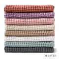 The towel is made of softened linen fibers woven on a cotton warp. It is thanks to the natural properties of linen that the towel is extremely absorbent, absorbs over 20% of moisture while remaining dry to the touch. The DESAYER waffle towel is light, airy and quick-drying. Linen towels are naturally durable, antibacterial and hypoallergenic.
