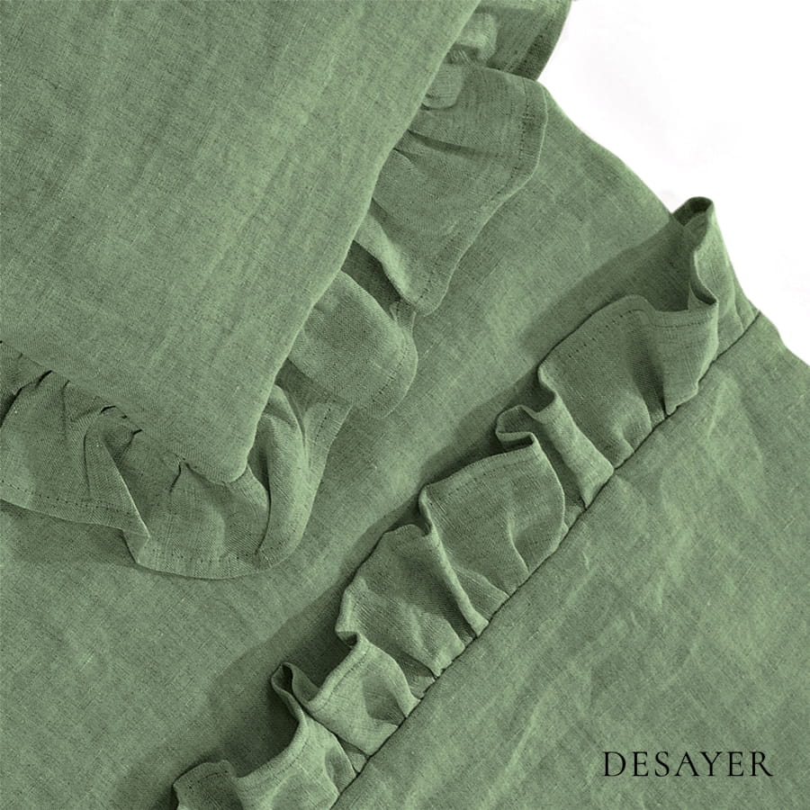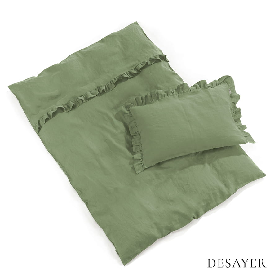 KID'S LINEN BEDDING WITH FRILL GREEN