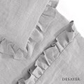 Soft linen bedding with a frill in grey colour. The pillowcase is decorated with a lovely frill on three sides. The same frill also adorns the duvet cover on 1/3 of the length of its upper side. The size of the pillow is measured without the frill. The bedding is made of 100% soft linen fabric, which is very gentle to the child's skin.