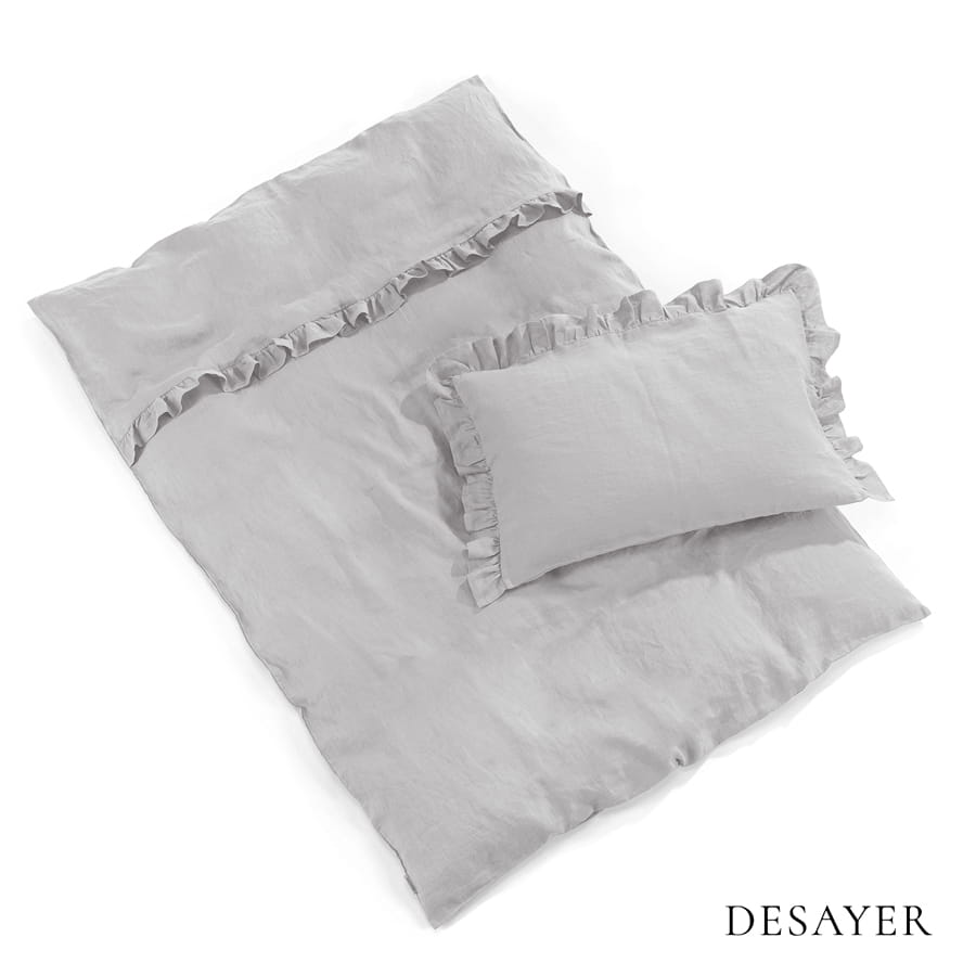 KID'S LINEN BEDDING WITH A FRILL | SILVER GREY