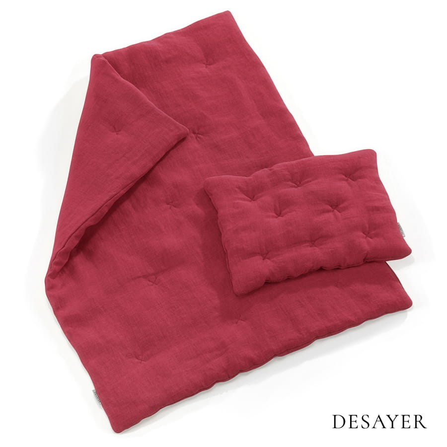 Red linen baby bedding made of 100% soft linen fabric, which is extremely delicate for the baby's skin. Pillows and quilt are filled with light and fluffy silicone nonwoven fabric, which makes it possible to use it all year round. The filling has been additionally gently quilted, which creates a charming pattern on the bedding.