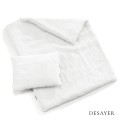 White linen bedding for babies with filling. The bedding is made of 100% soft linen fabric, which is very delicate for the baby's skin. Pillow and quilt are filled with light and fluffy silicone nonwoven fabric, which makes it possible to use it all year round. The dimensions of the pillow are 25x35 cm, and the quilt are 60x75 cm, height is about 3 cm. The size of the bedding is perfect for the DESAYER wicker babycot, the Moses basket or a pram.