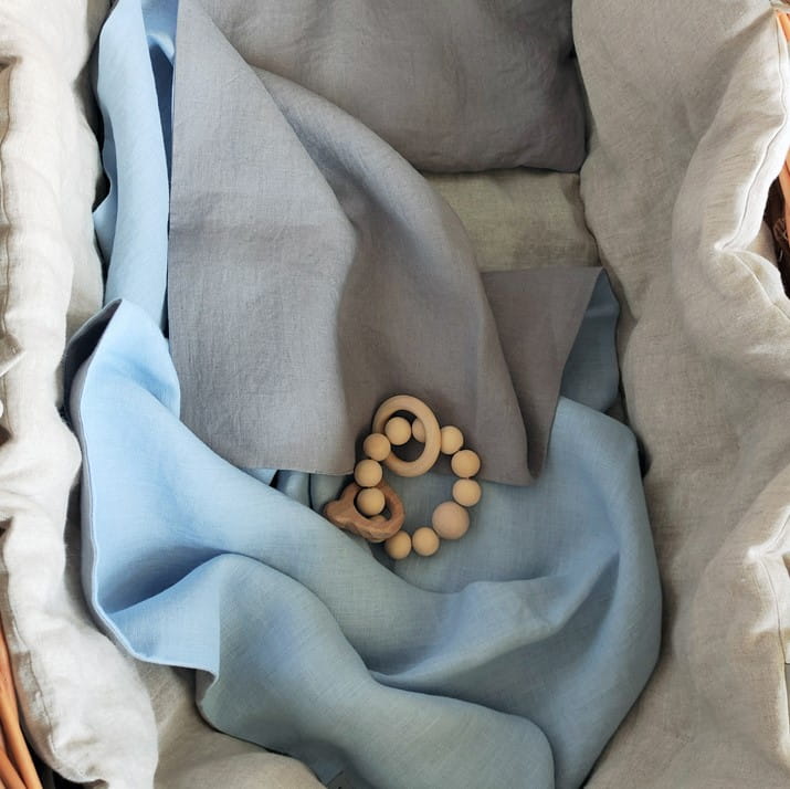 The linen baby blanket is made of two layers of softened 100% linen fabric. The first layer of it is sky blue, and the second color is left to your choice. You can create both a one-color and two-color variant. Linen fabric is extremely gentle to baby's skin, and becomes softer with time and the number of washes. Our blanket does not have any beautifying elements, and its corners are slightly rounded, all to make it completely safe to use from the first day of life.