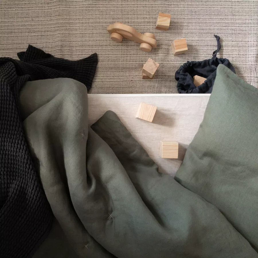 LINEN BEDDING FOR KIDS | KHAKI GREEN