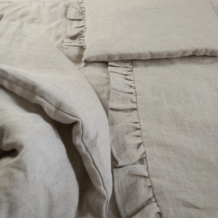 Classic natural linen bedding for kids. It is made of 100% softened linen fabric, which is very delicate for the child's skin. Both the pillow and the quilt are closed with an overlap. Write to us if you prefer a safe zipper. The bedding can also be sewn with a fluffy silicone filling. The bedding is light and can be used all year round. The natural properties of linen will give your baby a deep, healthy sleep, which will positively affect its natural development.