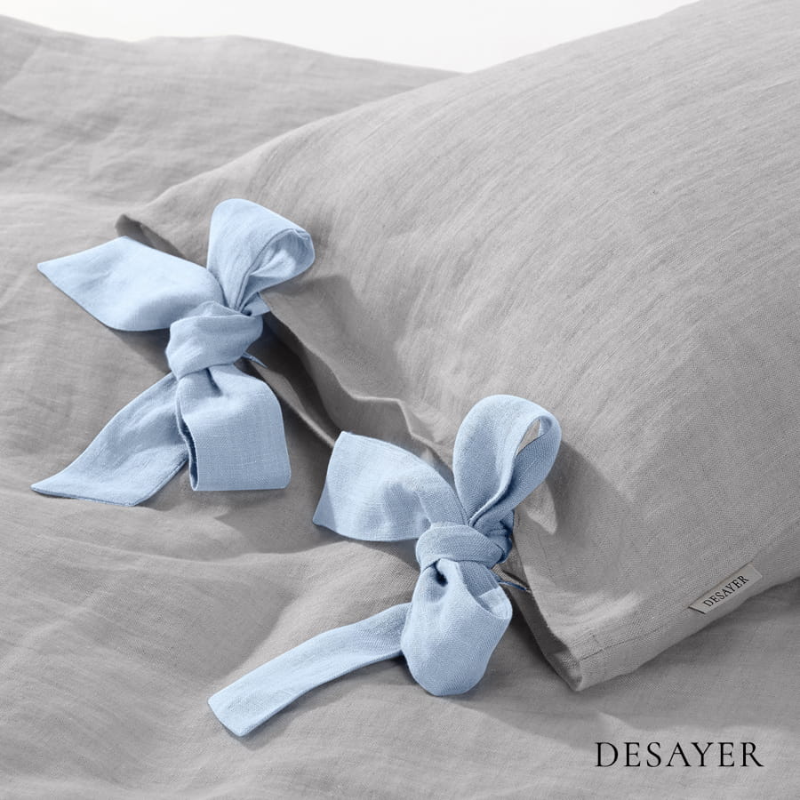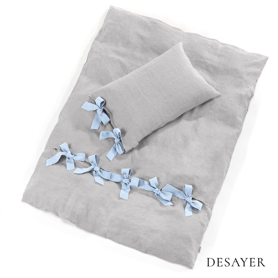 LINEN BEDDING FOR KIDS WITH BOWS | SILVER GREY