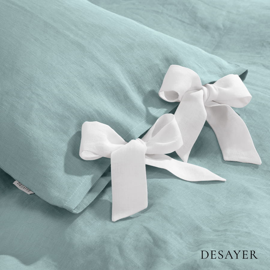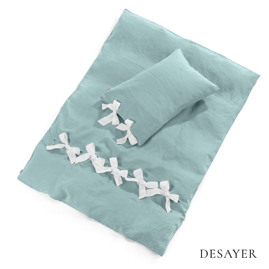 LINEN BEDDING FOR KIDS WITH BOWS | SILVER MINT