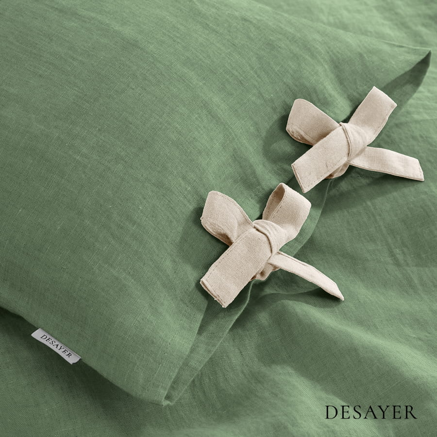 GREEN LINEN BEDDING FOR KIDS WITH TIES