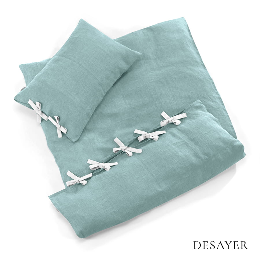 LINEN BEDDING FOR KIDS WITH TIES| SILVER MINT