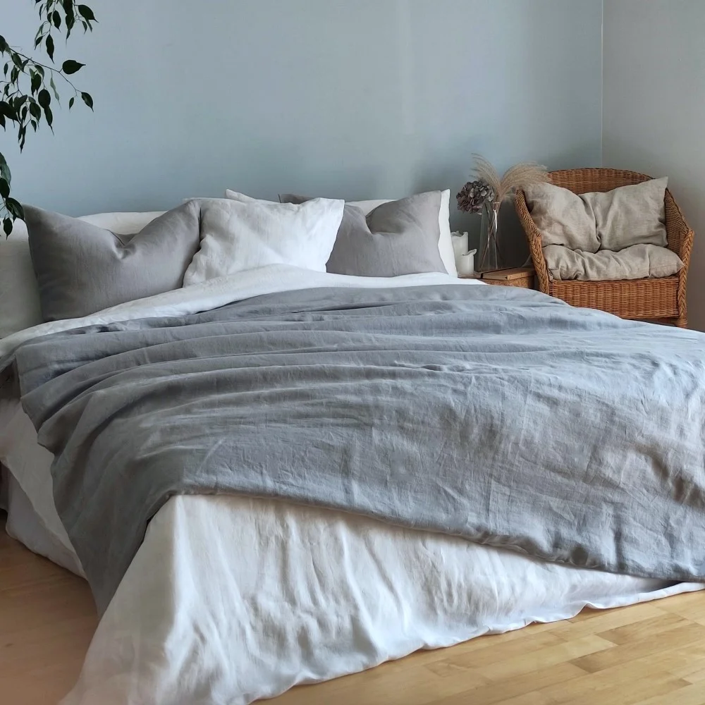 LINEN BEDDING SET SILVER GREY