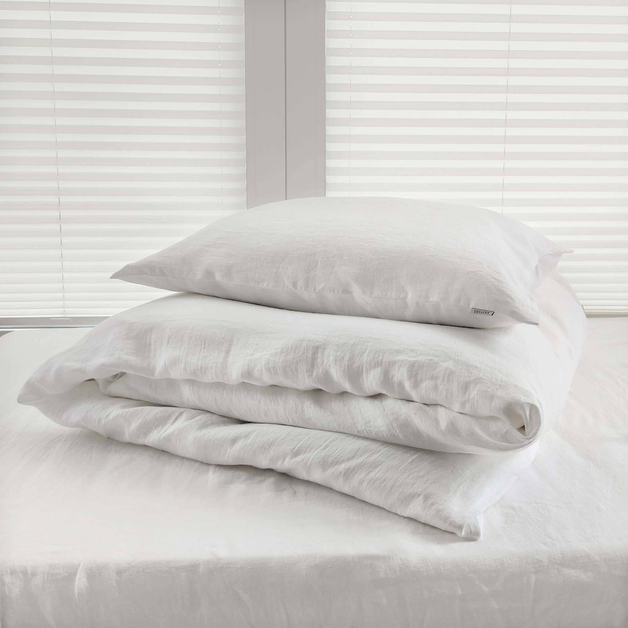 Linen bedding set in snow white with an envelope opening. Linen in white is, on one hand, an expression of natural simplicity, and on the other hand, elegance and nobility. The bed linen is made of soft 100% natural linen fabric.