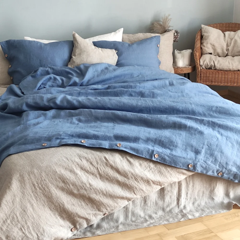 LINEN BEDDING SET WITH BUTTONS | BLUE