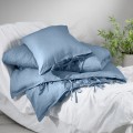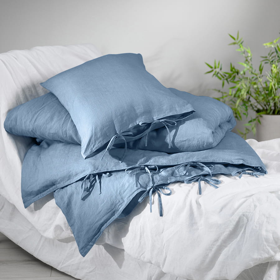 Linen bedding set in blue colour with ties. This blue color is usually associated with summer, relaxation and peace. Choose this color if you want to fill your bedroom with a positive summer aura. The bed linen is made of soft 100% natural linen fabric.