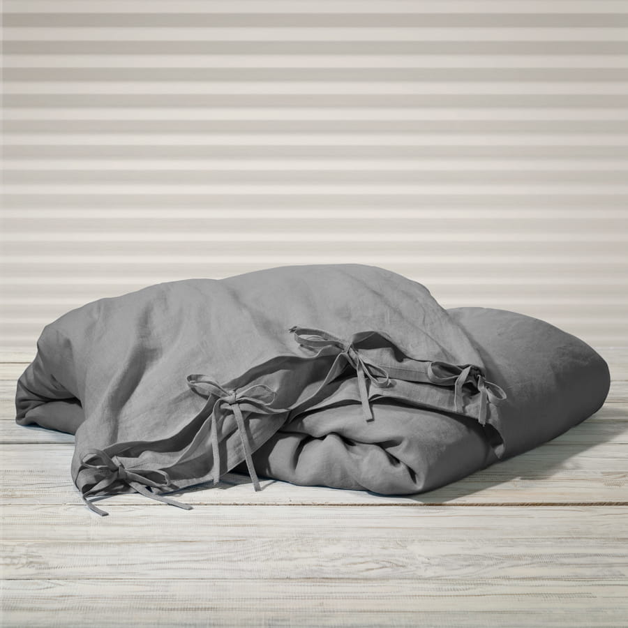 LINEN DUVET COVER WITH TIES| STEEL GREY