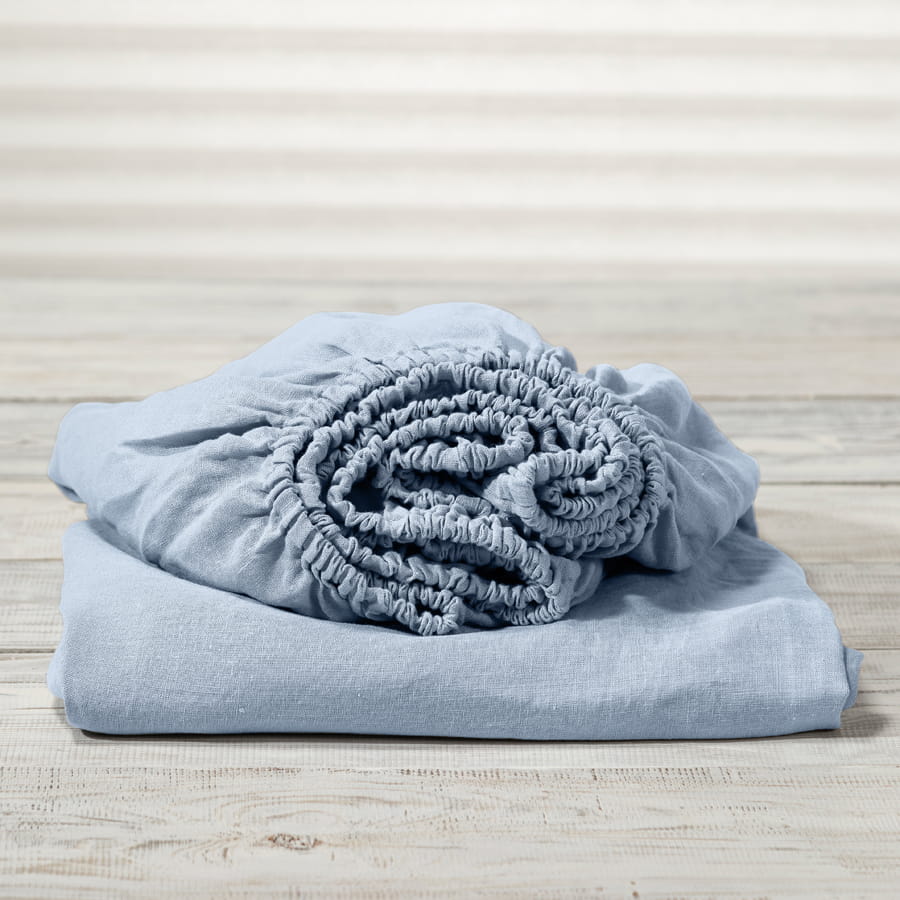 LINEN FITTED SHEET SKY BLUE