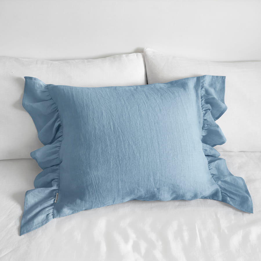 LINEN PILLOWCASE FRILLS | LIGHT BLUE