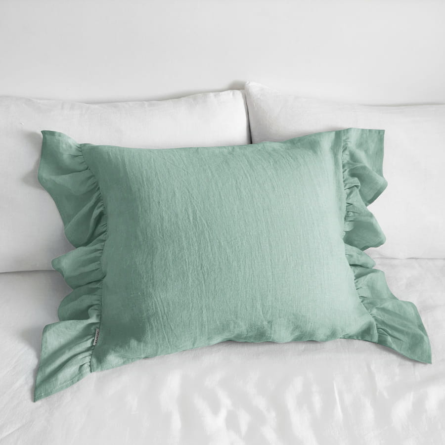 LINEN PILLOWCASE FRILLS | SAGE GREEN