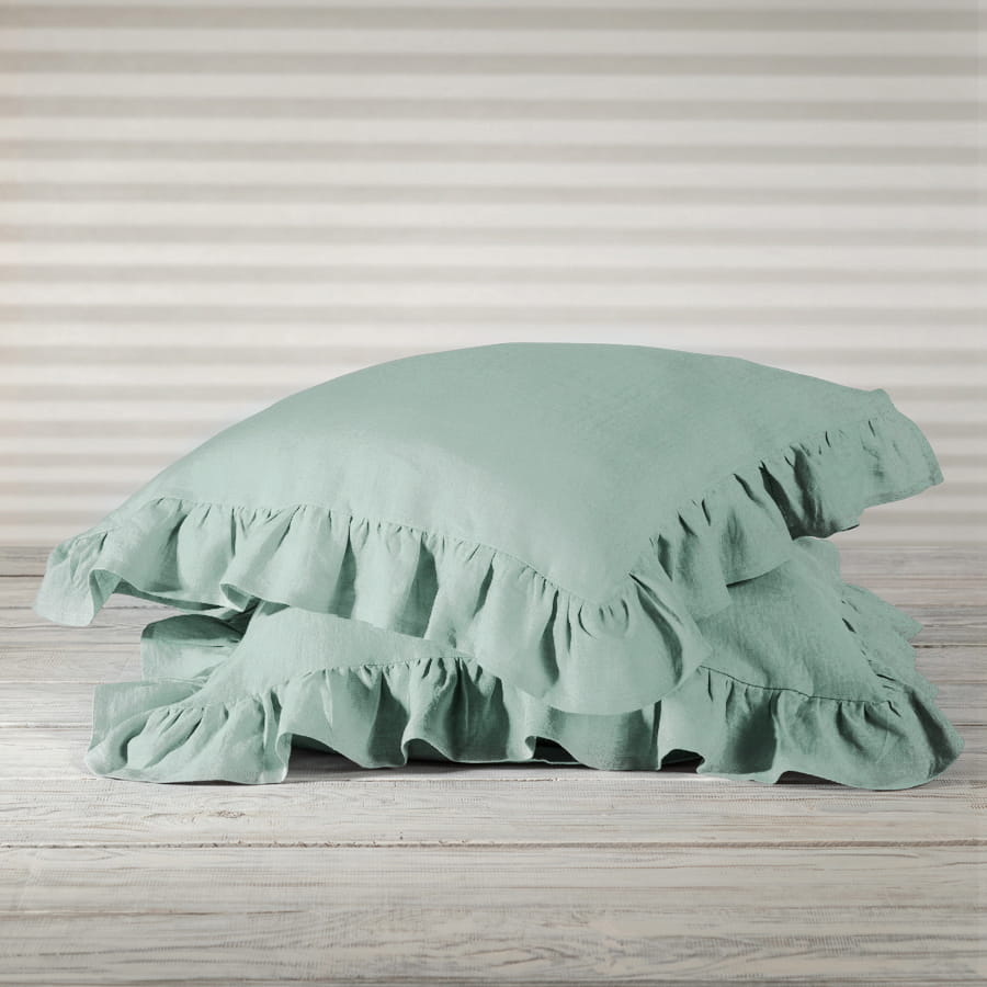 LINEN PILLOWCASE RUFFLE TRIM | SAGE GREEN
