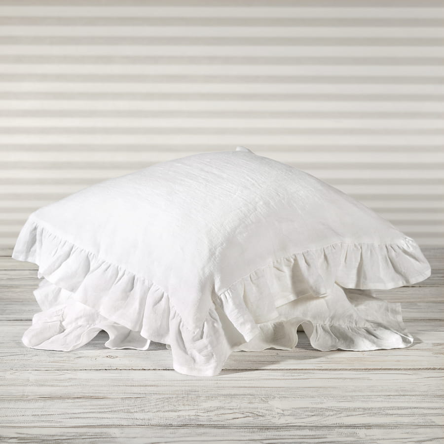 LINEN PILLOWCASE RUFFLE TRIM | SNOW WHITE