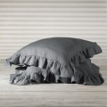 LINEN PILLOWCASE RUFFLE TRIM STEEL GREY