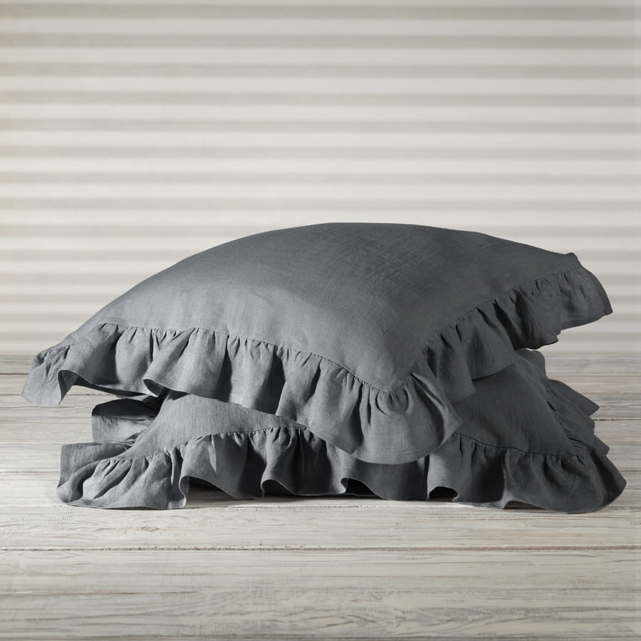 LINEN PILLOWCASE RUFFLE TRIM | STEEL GREY
