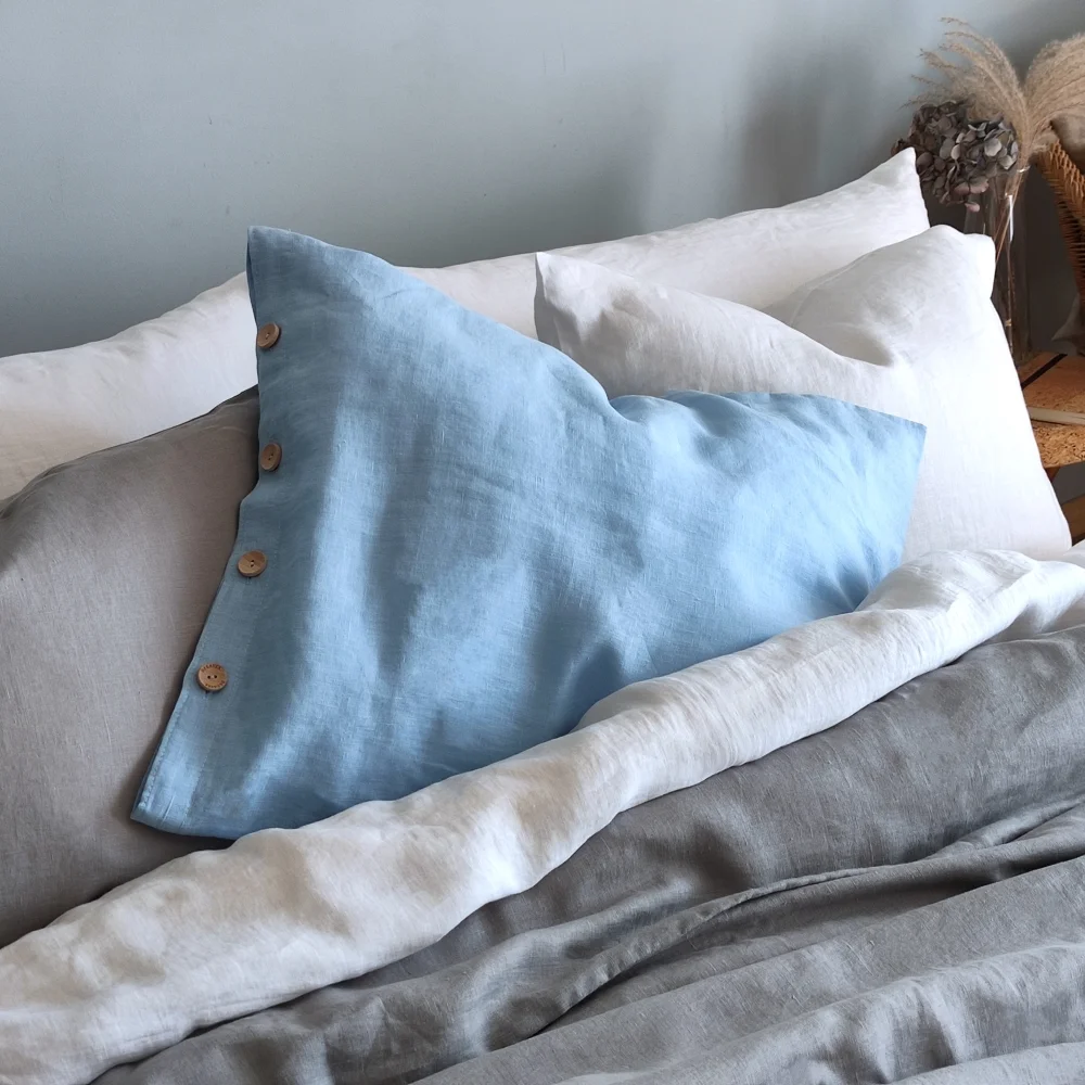 LINEN PILLOWCASE WITH BUTTONS | SKY BLUE