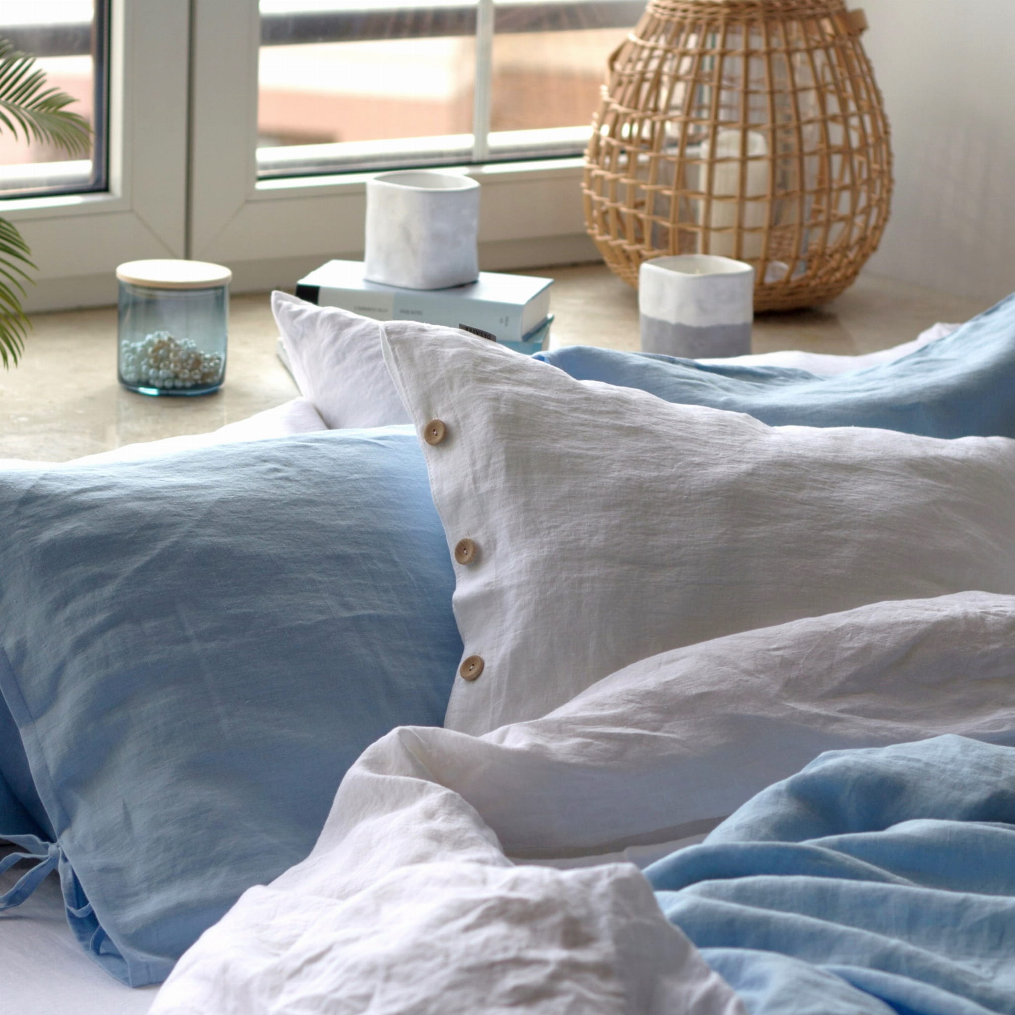 LINEN PILLOWCASE WITH BUTTONS | SNOW WHITE