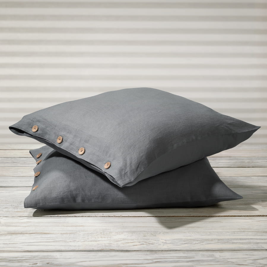 LINEN PILLOWCASE WITH BUTTONS |STEEL GREY