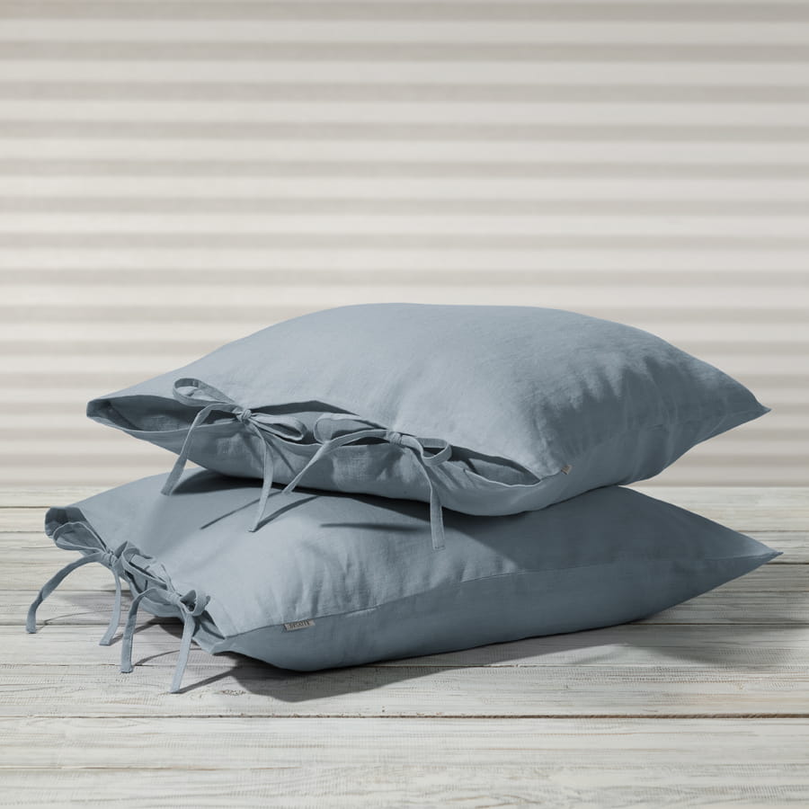 LINEN PILLOWCASE WITH TIES DUSTY BLUE