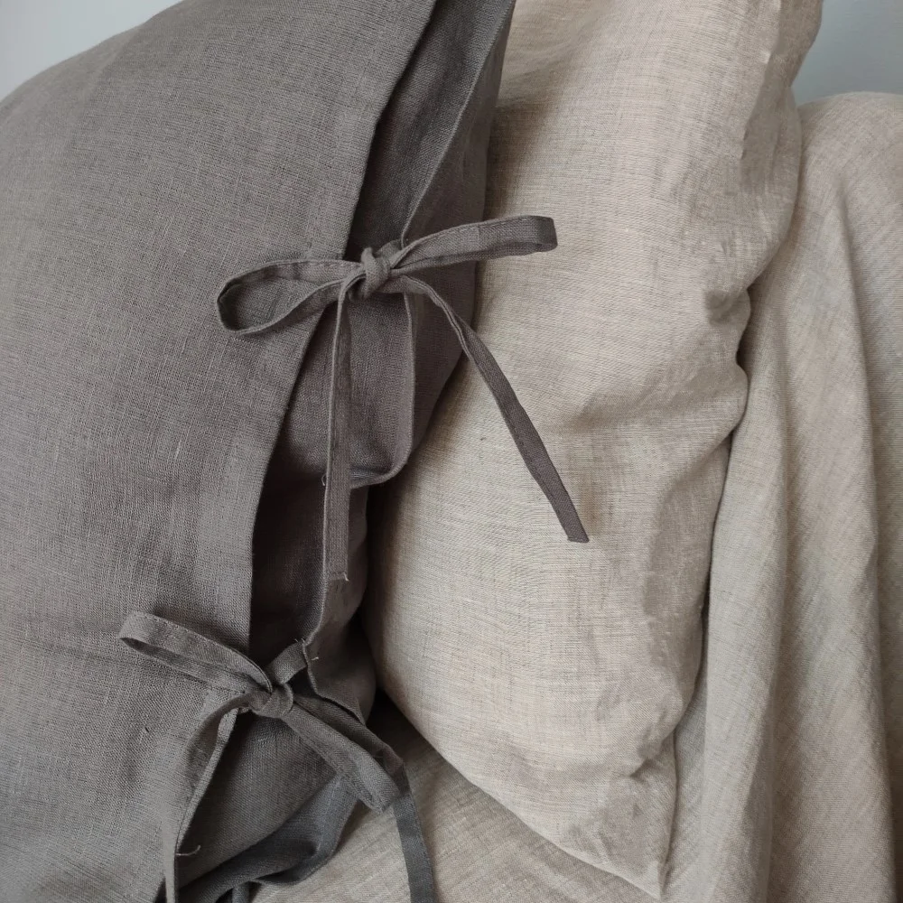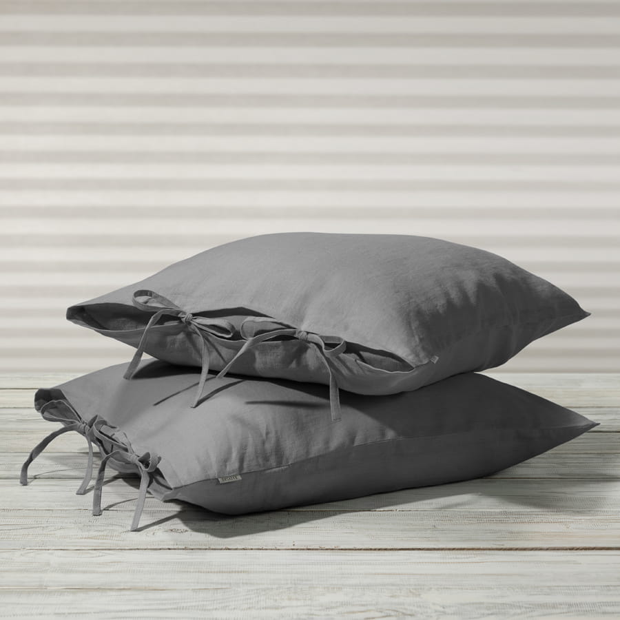 LINEN PILLOWCASE WITH TIES | STEEL GREY
