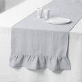 LINEN RUNNER RUFFLE TRIM SILVER GREY