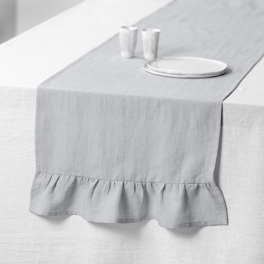 LINEN RUNNER RUFFLE TRIM | SILVER GREY