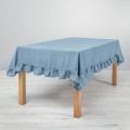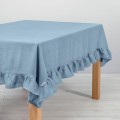 LINEN TABLECLOTH RUFFLE TRIM LIGHT BLUE