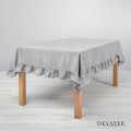 LINEN TABLECLOTH RUFFLE TRIM SILVER GREY