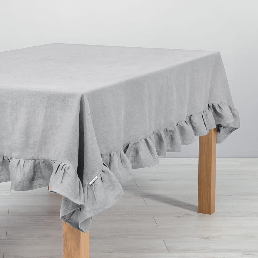 LINEN TABLECLOTH RUFFLE TRIM | SILVER GREY