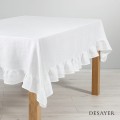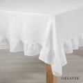 LINEN TABLECLOTH RUFFLE TRIM SNOW WHITE
