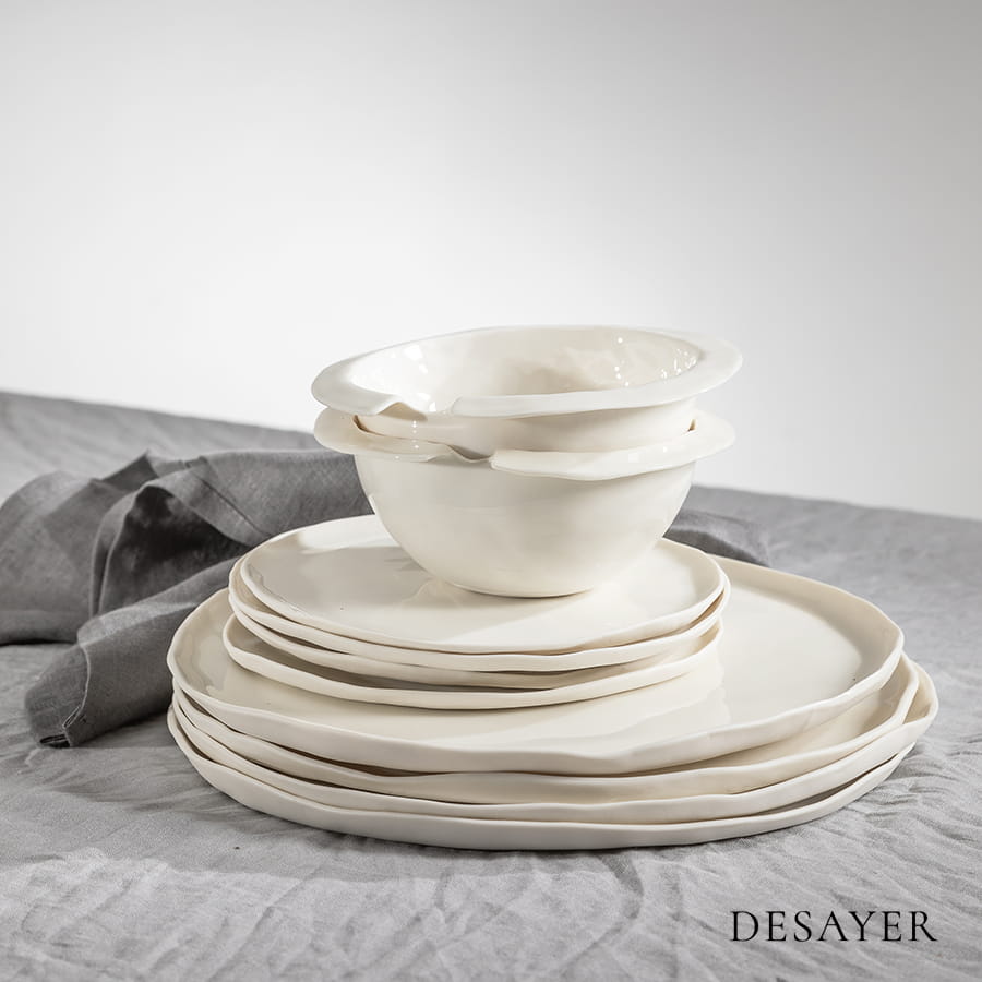 Artystka rzeźbiarka postanowiła stworzyć unikatową kolekcję porcelanowych naczyń. Bardzo elegancki duży talerz jest jednym z elementów kolekcji.