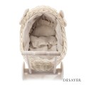 Both the DESAYER wicker pram and its linen accessories are handmade in Poland with attention to the highest quality.