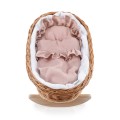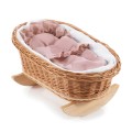 WICKER DOLL'S CRADLE NATURAL WITH WHITE AND PINK LINEN