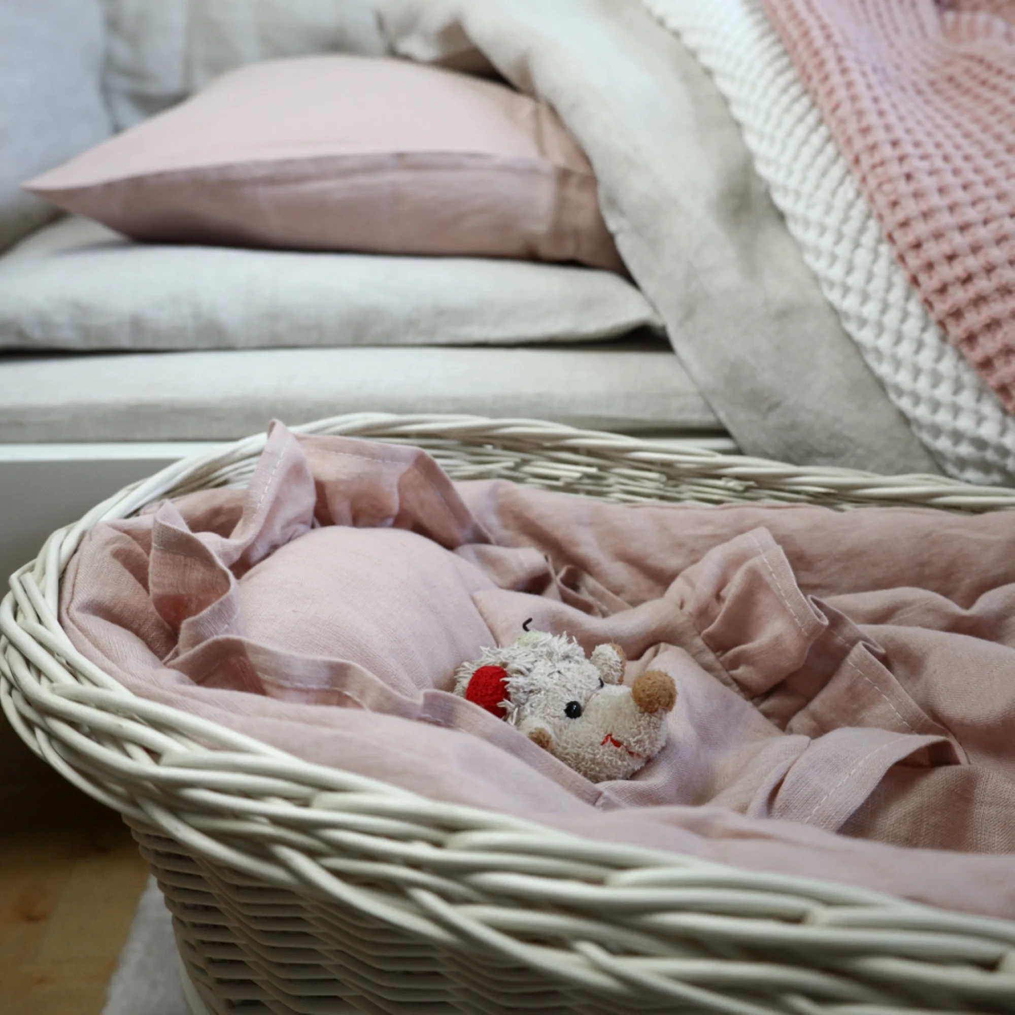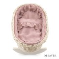 WICKER DOLL'S CRADLE WHITE WITH PINK LINEN